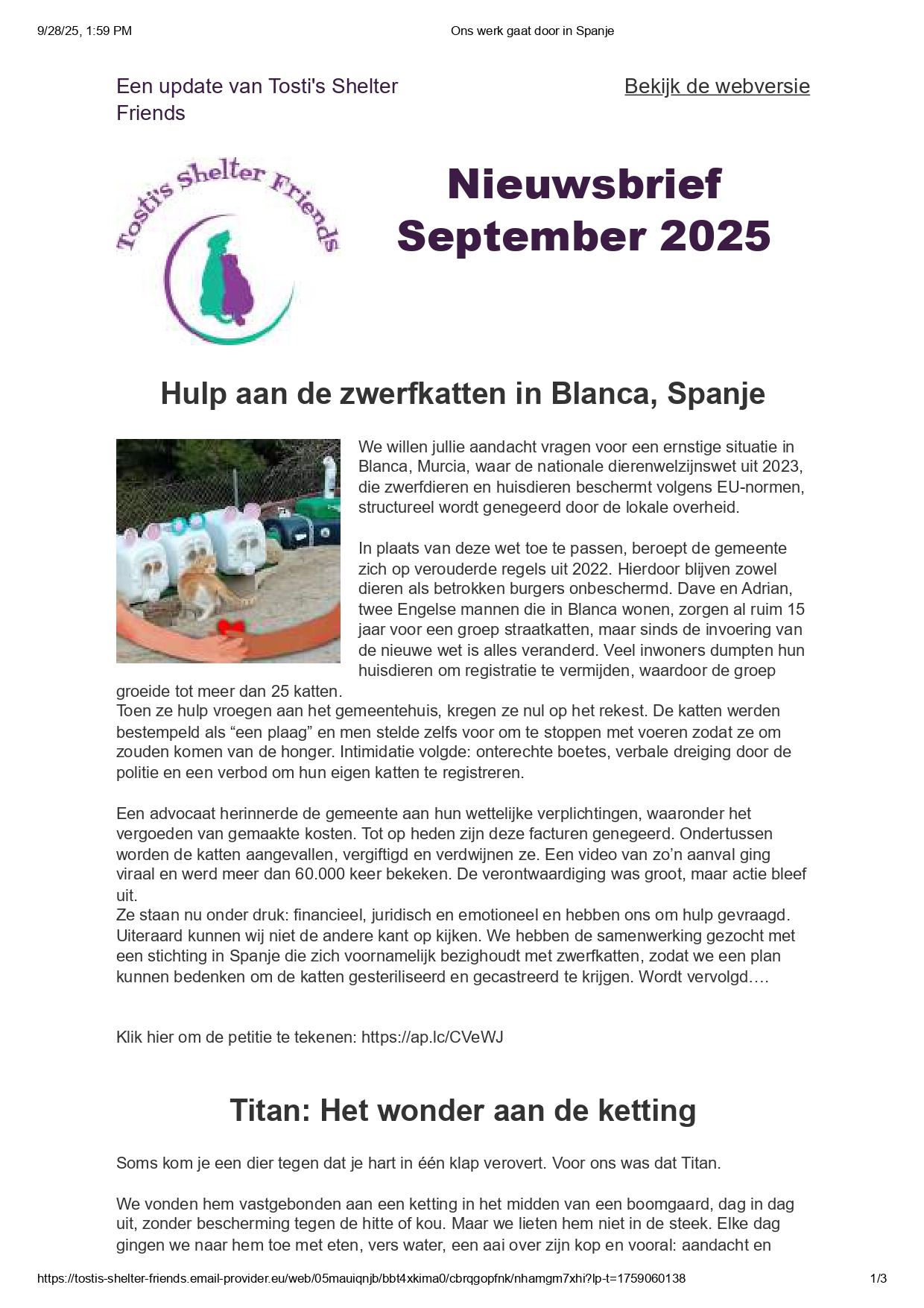 Nieuwsbrieven Lees hier de verstuurde nieuwsbrieven. Tosti’s Shelter Friends Je kunt ons volgen via onderstaande sociale media VolgenVolgen Nieuwsbrief Abonneer Door het abonneren op onze nieuwsbrief ga je akkoord met onze privacyverklaring.